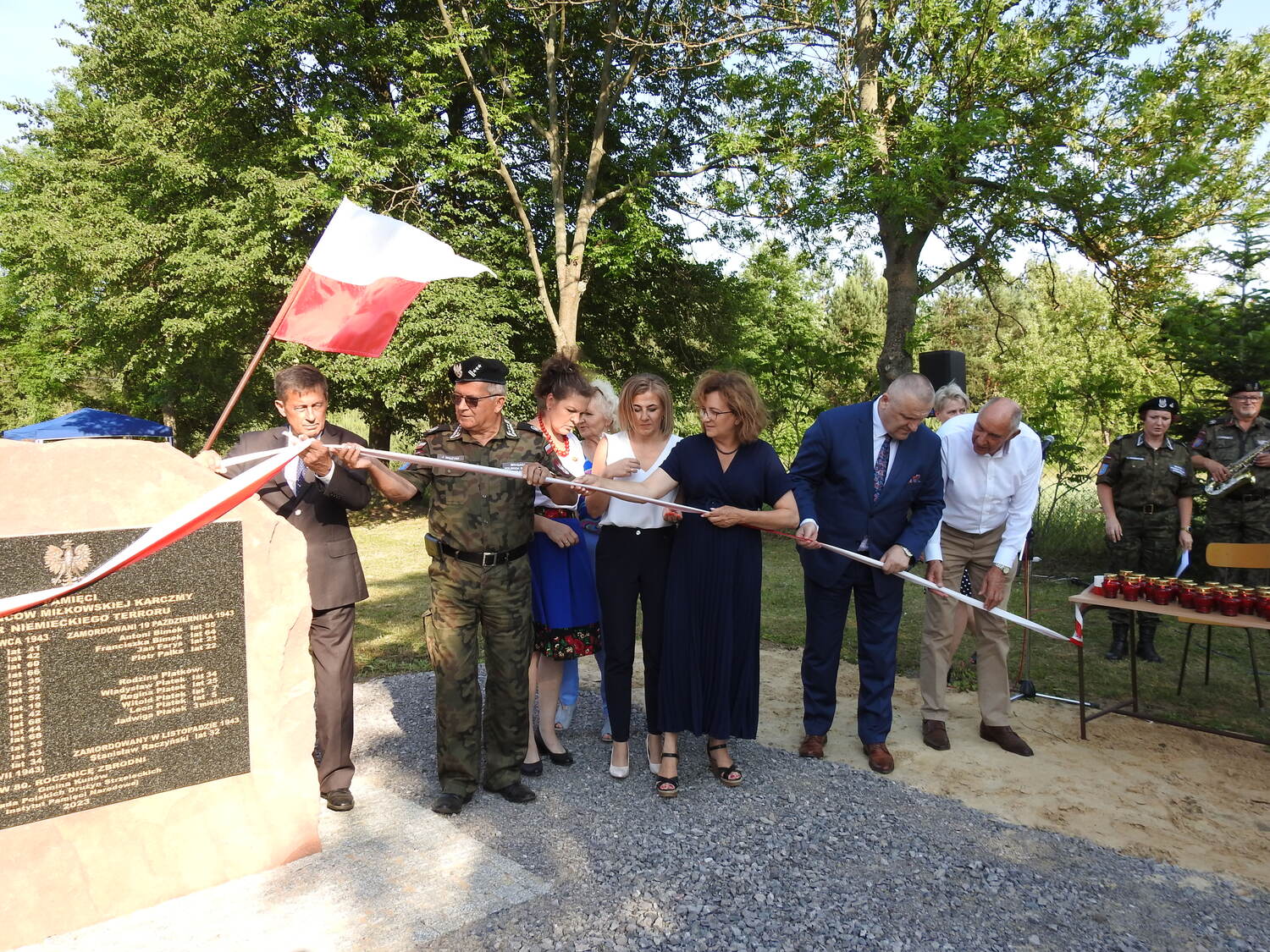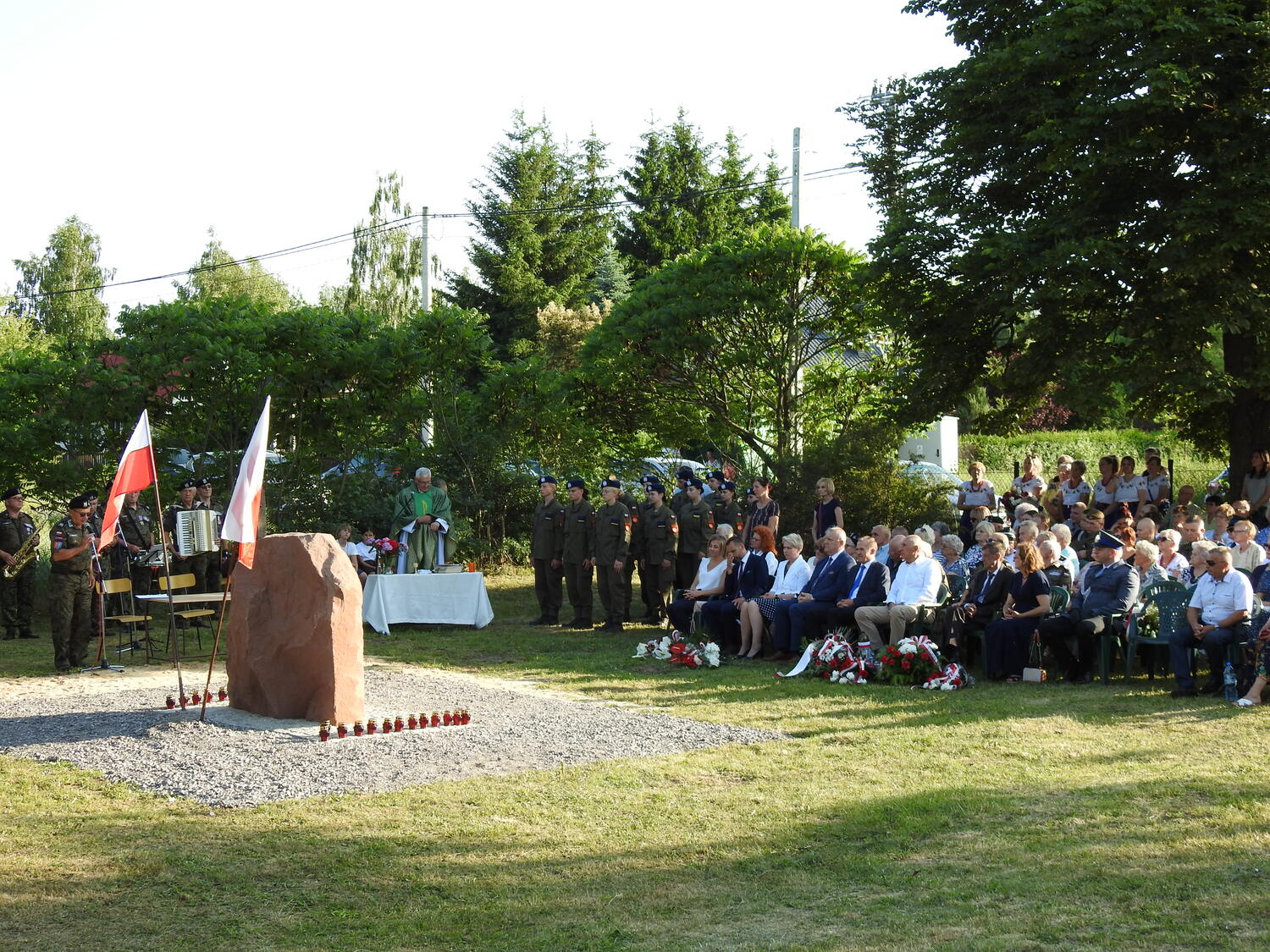 Podczas uroczystości uczestnicy dowiedzieli się więcej o niemieckiej zbrodni z czasów II wojny światowej dzięki prelekcji historycznej. Następnie monument oficjalnie został odsłonięty a uczestnicy zapalili przed nim symboliczne znicze. Odbyła się również msza polowa w intencji pomordowanych mieszkańców, w trakcie której nastąpiło poświęcenie pomnika.