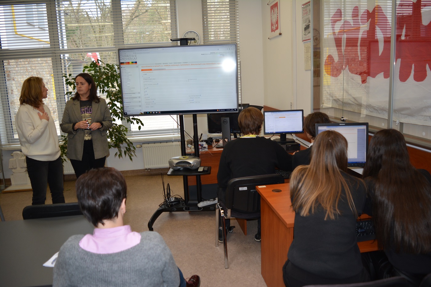 W ramach spotkania pracownicy Wydziału Archiwalnego kieleckiej Delegatury zapoznali młodzież z zasadami korzystania z zasobu archiwalnego IPN. Przedstawili również dostępne bazy danych: Cyfrowe Archiwum, Centrum informacji o ofiarach II wojny światowej, starty.pl., pomocne przy prowadzeniu kwerend odnośnie osób represjonowanych, zaginionych i zmarłych w okresie II wojny światowej.