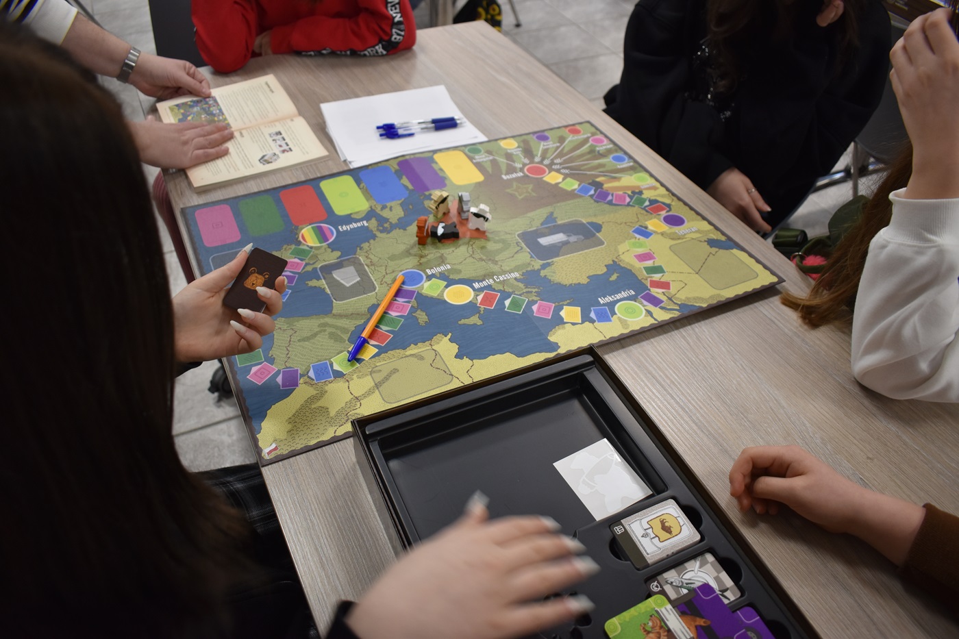 Oprócz tego, kieleccy edukatorzy zaproponowali uczestnikom zajęć planszówki, między innymi wspólną grę w „Misia Wojtka”. W ruch poszły również kolorowanki i kredki.
