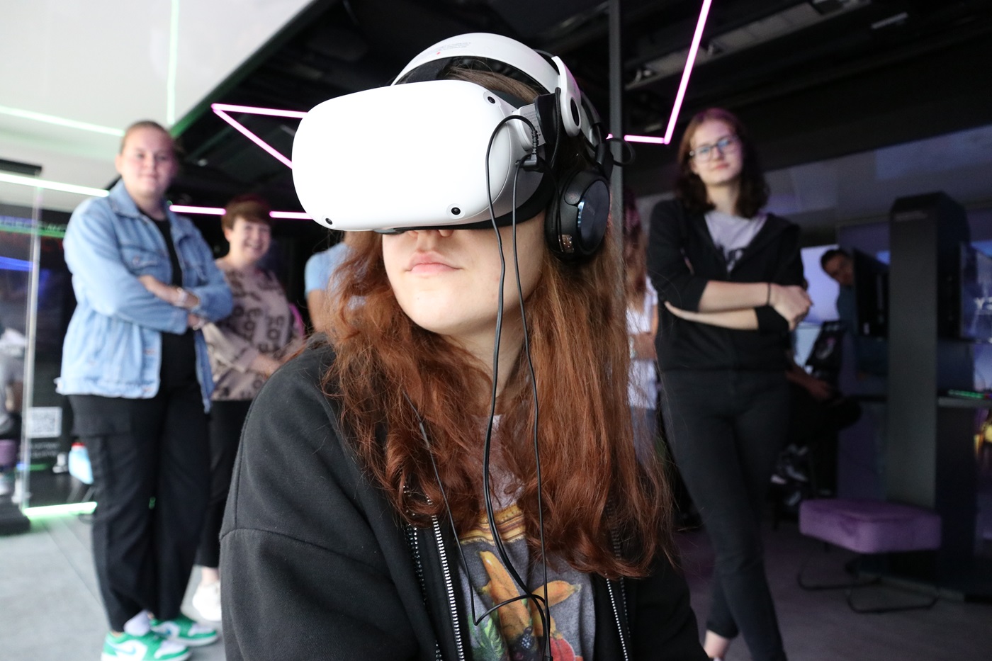 Stanowiska VR (Virtual Reality) dostępne są dla wszystkich, którzy ukończyli 13 rok życia (do 18 roku życia potrzebne jest pisemne oświadczenie rodziców). Osoby poniżej 13 roku życia nie mogą skorzystać z tych stanowisk.