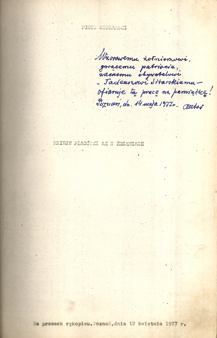 W sierpniu 2024 r. do archiwum Delegatury Instytutu Pamięci Narodowej w Kielcach trafiły zbiory Jarosława Miszczuka (IPN Ki 361) i Olgierda Kędzierskiego (IPN Ki 363). Pierwszy składa się z 6 jednostek archiwalnych, w tym niezwykle cennego maszynopisu zawierającego opis dziejów placówki AK w Irządzach autorstwa Piotra Stolarskiego.