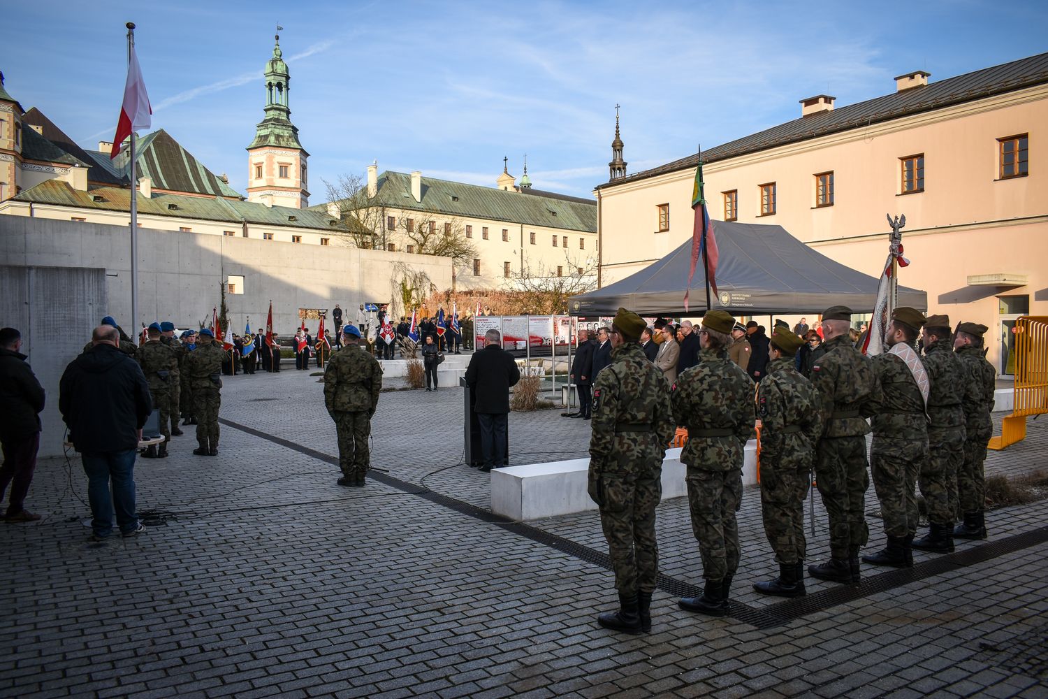 W ciszy i zadumie złożono kwiaty przy Ścianie Straceń oraz przy fotografiach więzionych, które tworzą dziś Mur Pamięci dawnego więzienia. Na dziedzińcu dzisiejszego Ośrodka Myśli Patriotycznej i Obywatelskiej w Kielcach odbyła się część oficjalna uroczystości, którą rozpoczęło wspólne odśpiewanie „Mazurka Dąbrowskiego”.