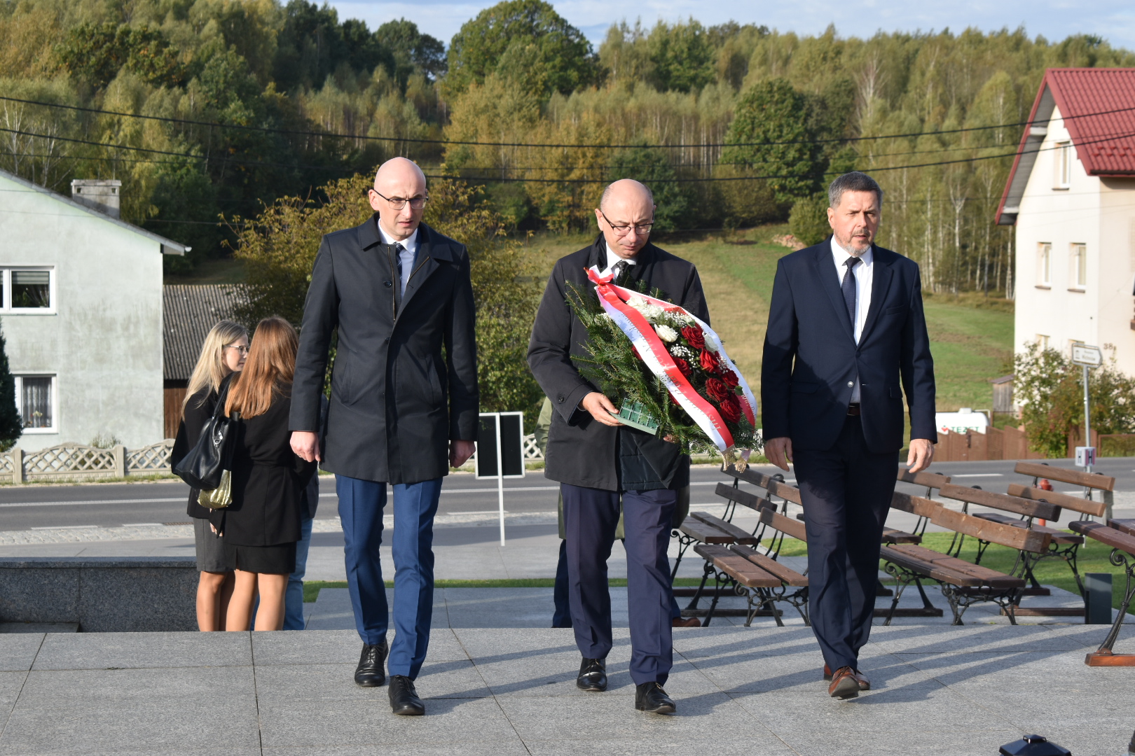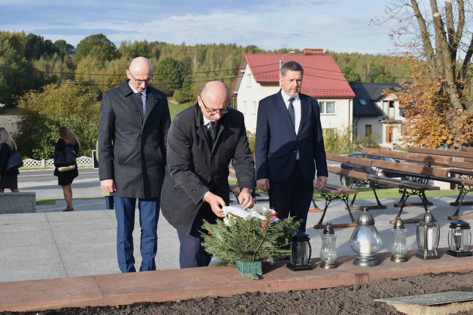 Zastępca prezesa IPN dr Mateusz Szpytma, w towarzystwie naczelnika Delegatury w Kielcach dr Roberta Piwki oraz zastępcy dyrektora Muzeum Wsi Kieleckiej Jarosława Karysia złożył wiązankę kwiatów przed pomnikiem i zbiorową mogiłą zamordowanych mieszkańców Michniowa.